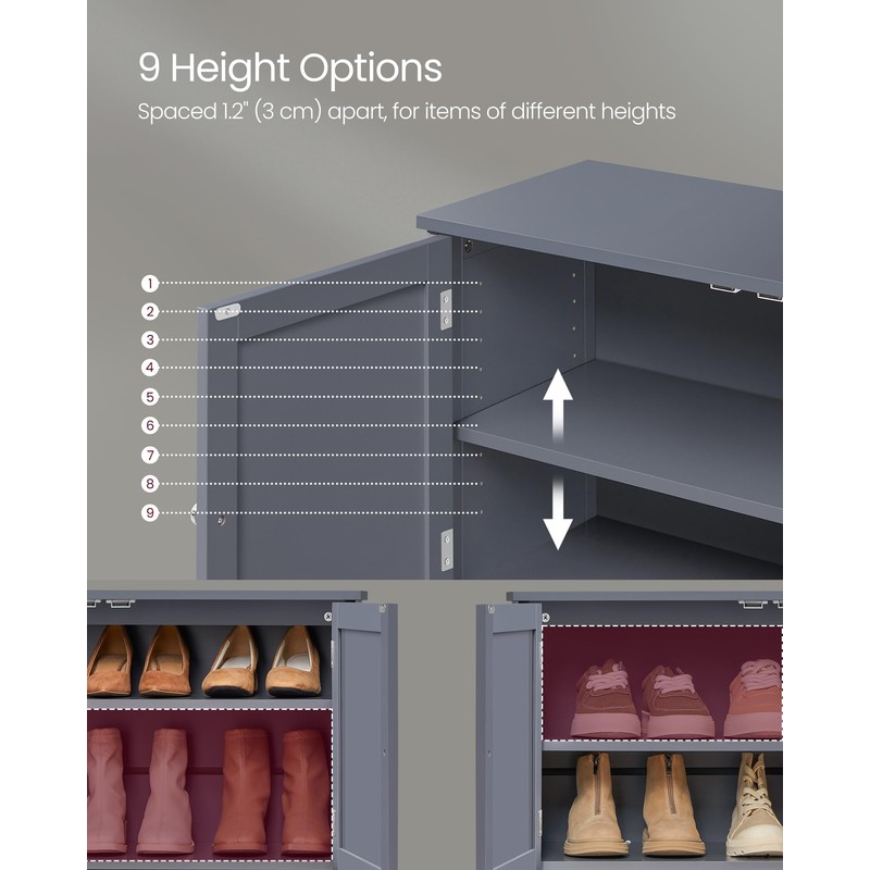 - Modern Style: Enhance your entryway with this stylish shoe cabinet. Its modern country design and attractive slate gray color seamlessly blend with any home decor, elevating the overall ambiance of your living space