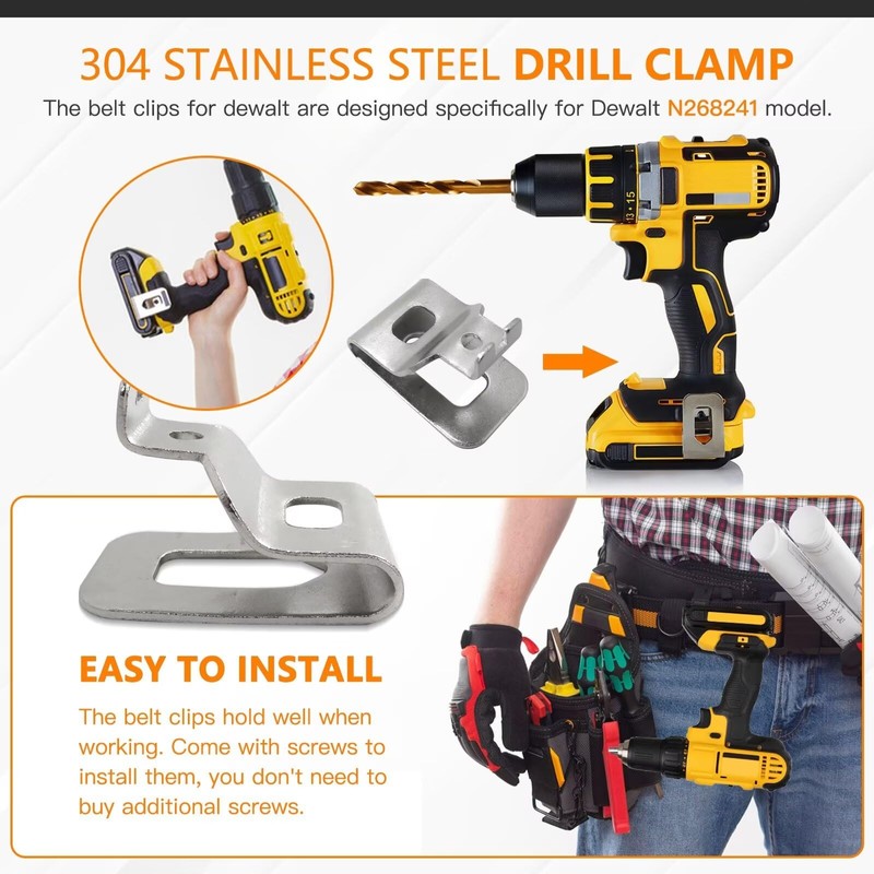 Vicue New 6x Belt Clips Fit for Dewalt N268241, 304 Stainless Steel Drill Tool Clips Hook Kit with Screws Fit for Dewalt 20V Power Tools DCD795D2-B2, DCD795D2-B3, DCD795D2-BR, DCD796D2, DCD796D2-AR