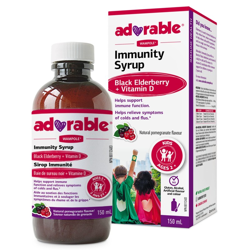 - COLD & FLU SYMPTOMS RELIEF AND HELPS SUPPORT IMMUNE FUNCTION: The Wampole Adorable's Immunity Syrup offers a blend of black elderberry and vitamin D, an ally for cold and flu season, its vitamin D contribution offers immune support for children as young as 2 years old.