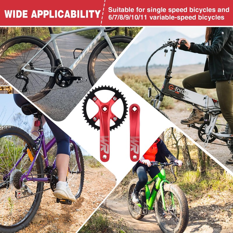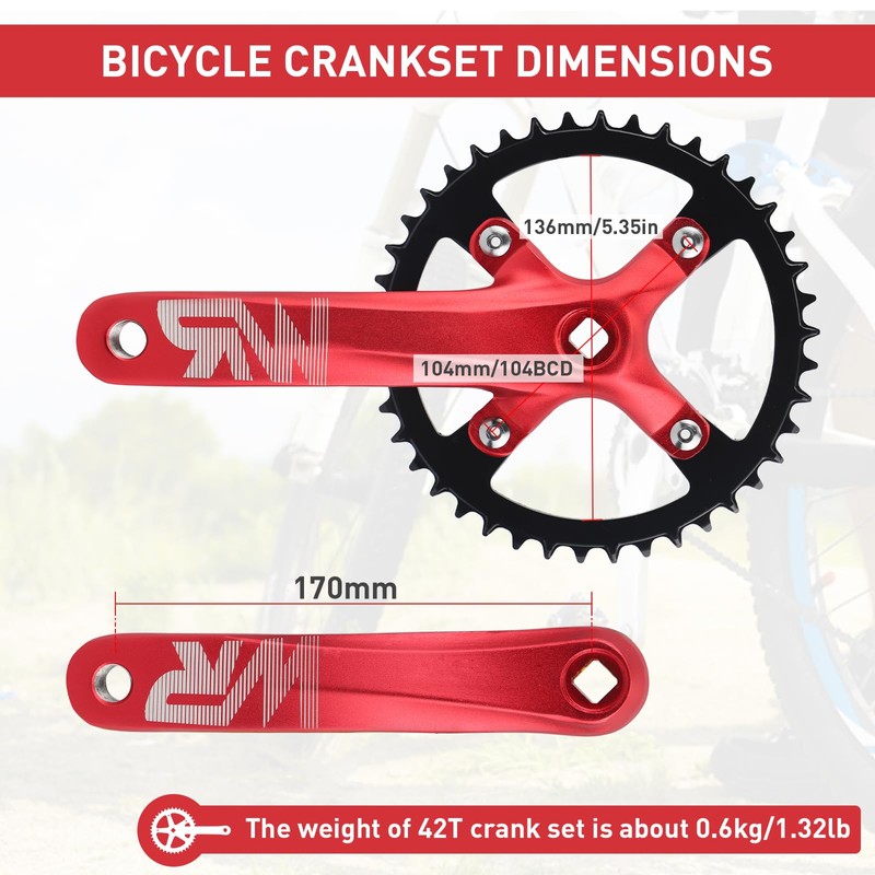 • Suitable for:42T bike crankset, 170mm arm, suits for single speed bicycle and 6/7/8/9/10/11 speeds MTB Bike, folding bicycle