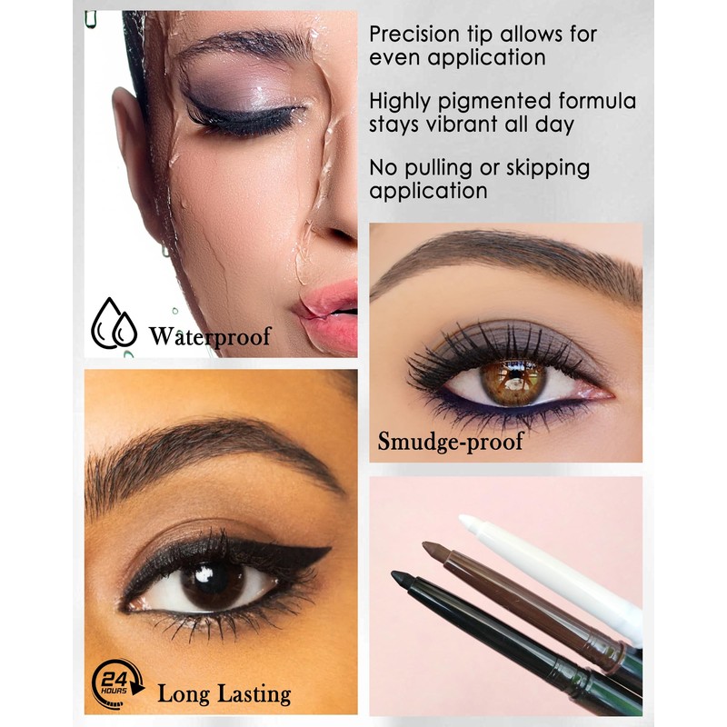 - Highly Pigmented & Smooth - The cream eyeliner pencil with high pigmented quickly dry, that is easy to apply and colored. The soft and smooth strokes can help outline a beautiful and detailed eyeliner. The gel eyeliner infuses your eyes with captivating allure, keeping your eyes looking stunning from morning to night.