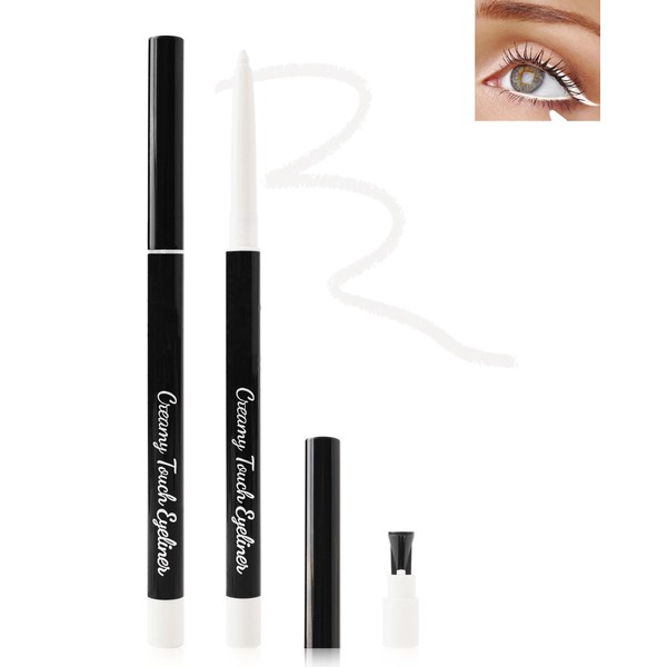 White Eyeliner for Waterline, Cream Gel Eyeliner Water Line, Long Lasting Waterproof Smudge-Proof, Highly Pigmented Retractable Eye Liner Brightener Pen,Built in Sharpener, Smooth Eye Makeup for Women