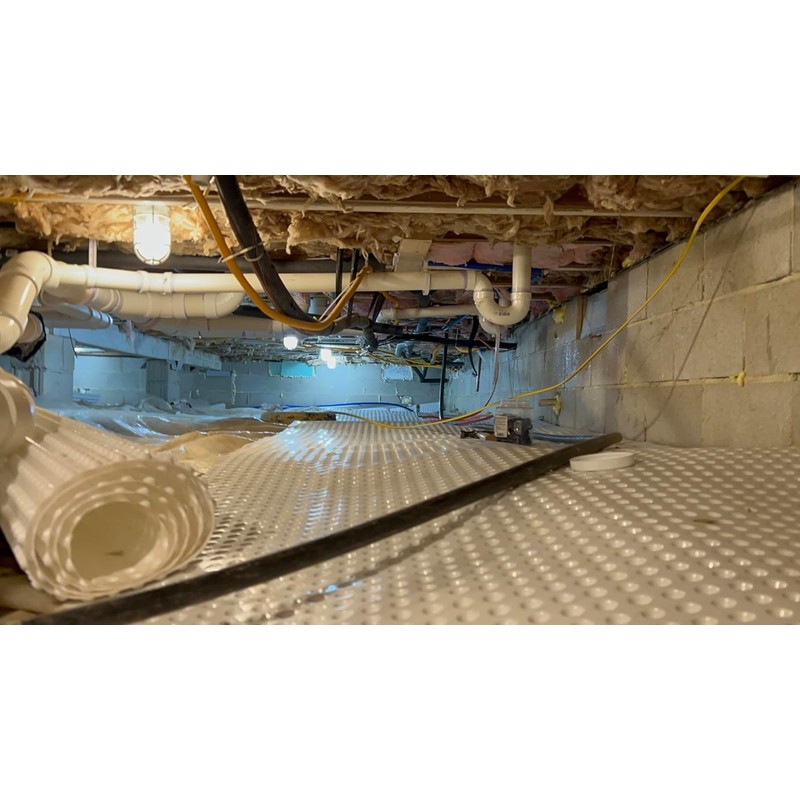• Protect Vapor Barriers & Floors: WhiteCap Dimple Drainage Matting is described as the installer's "Best Friend." It turns the entire crawlspace floor into one giant kneepad that protects the vapor barrier liner from puncture and wear.