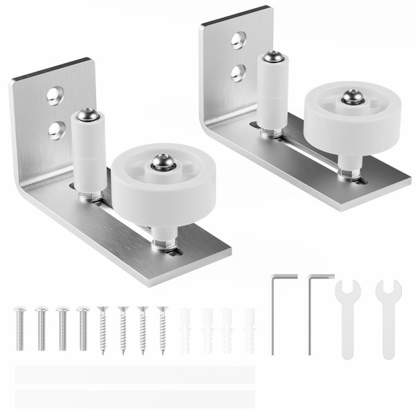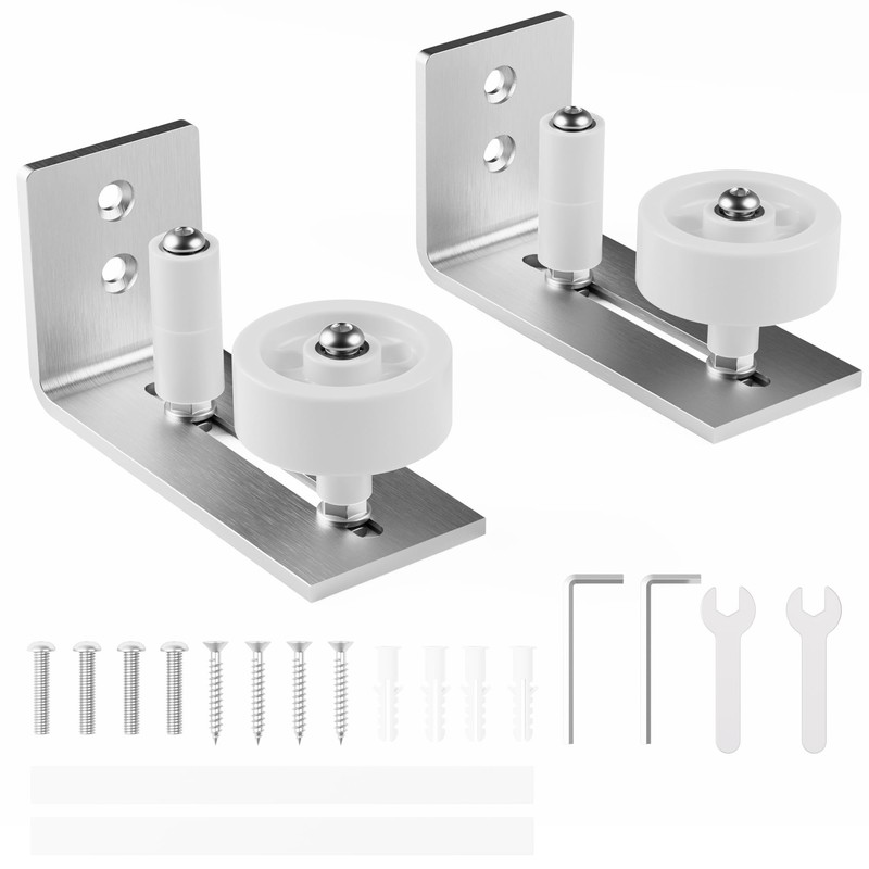 - 【Adjustable Rollers】Our floor guide's roller wheel is adjustable, with 8 different assembly options to choose from, Therefore it is suitable for almost all thicknesses of barn doors.