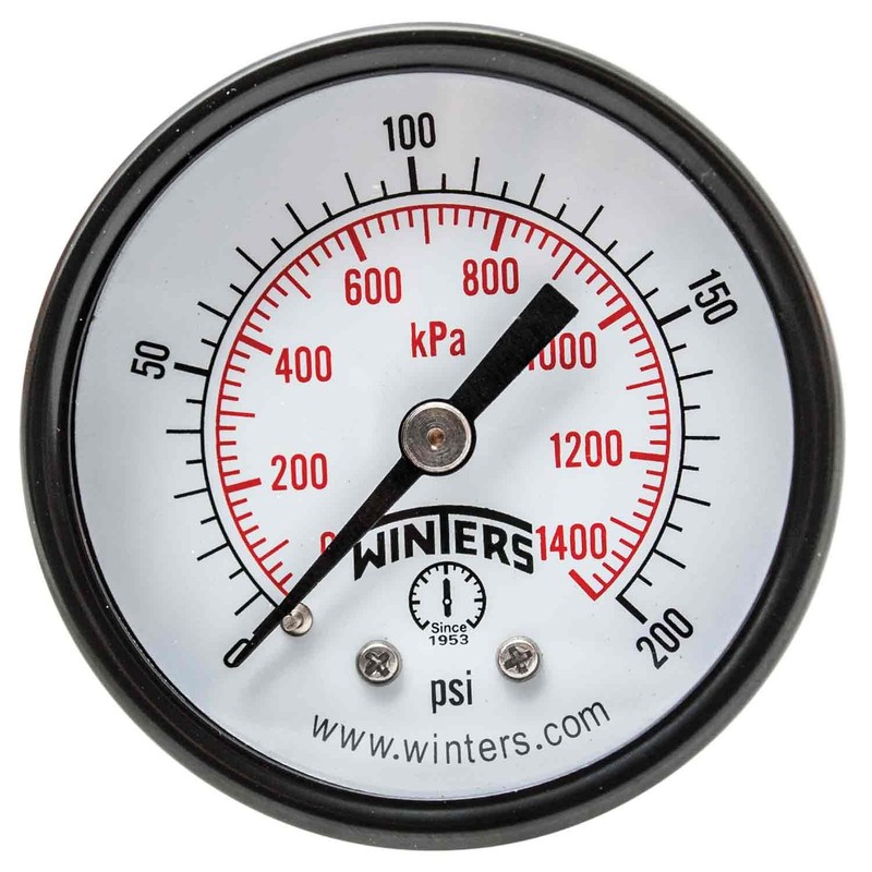 Winters PEM Series Steel Dual Scale Economy Pressure Gauge, 0-200 psi/kpa, 1-1/2" Dial Display, +/-3-2-3% Accuracy, 1/8" NPT Center Back Mount