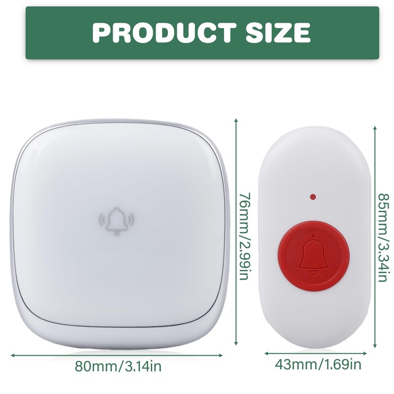 • Elderly Alarm Call Button: This Personal Alarms for Elderly is suitable for the elderly, disabled, children, pregnant women or patients who need quick help. When you need help in an emergency such as falling or injury, just press the call button to ask the caregiver for help without shouting.
