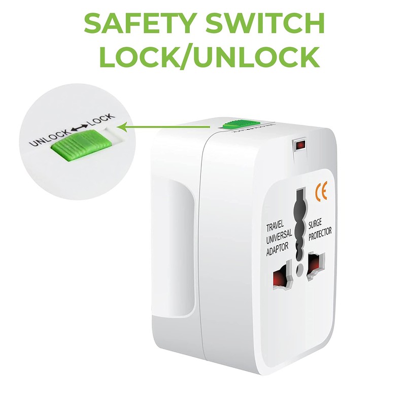 - ⚡【PIN LOCK FOR SECURE PLUGIN】: Don't you hate when you press the pins sinks back into the Travel Adapter when you press it in the outlet? This Universal Travel Adapter locks and unlocks the 8 pins securely into its fixed positions