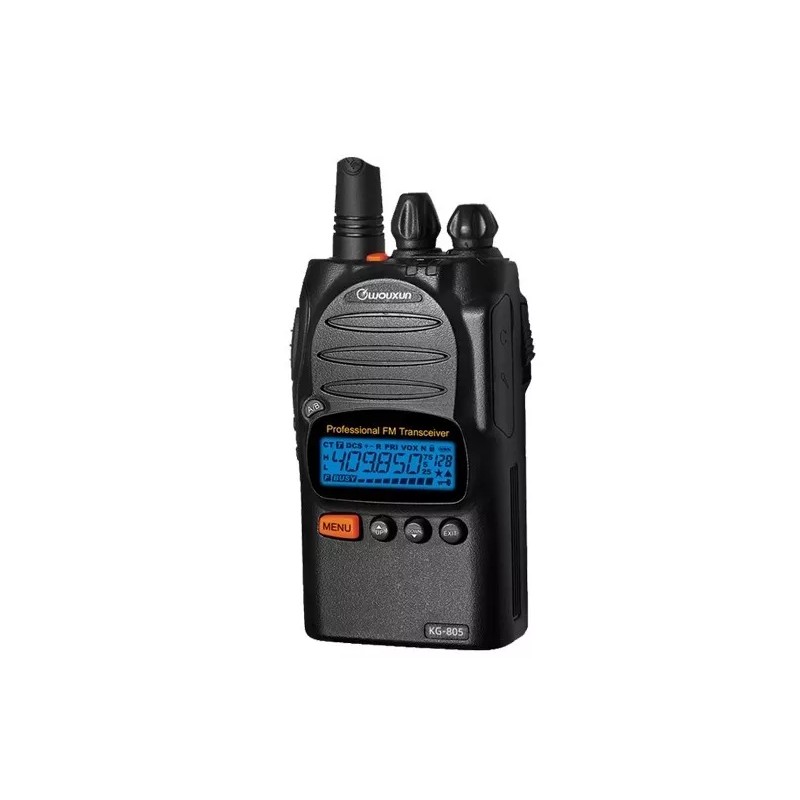 The Wouxun KG-805G comes with a rechargeable Li-Ion battery pack, belt clip, ANO-003G removable antenna, wrist strap, desktop charger, AC cord, owner's manual and a one year manufacturer warranty from Wouxun.