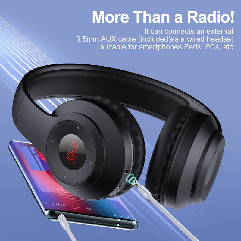 - 【Bluetooth 5.0 & AUX Jack】 For wireless, Bluetooth 5.0 technology ensures seamless and stable connections to your Bluetooth devices. For Wired, the walkman headset radio comes with AUX jack (3.5mm aux cable included). Compatible with smartphones, tablets, laptops, etc.