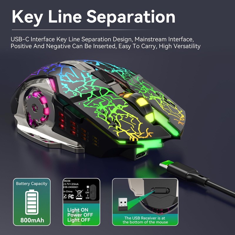 - The keyboard and mouse share a USB receiver, and the code has been completed by default. You only need to insert the receiver and turn on the keyboard and mouse to use it. (Note: If the connection is lost for any reason, you only need to reset the code pairing. Or if it cannot be used for any reason, please contact us in time, we will try our best to solve it.)