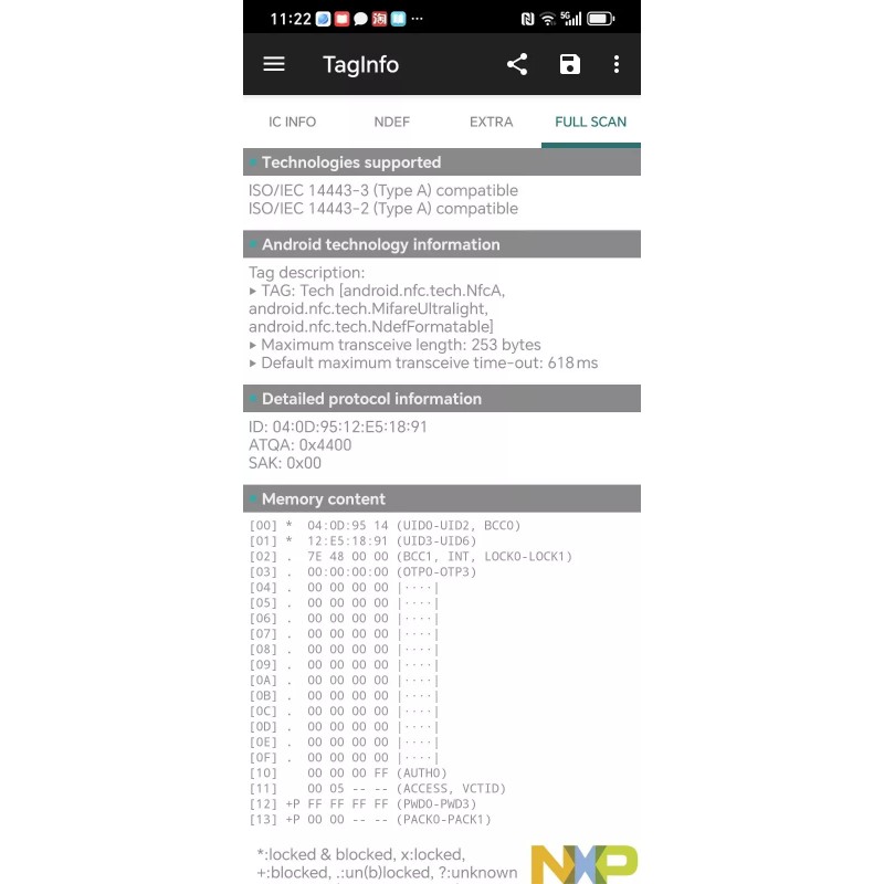 - 7 bytes serial number (cascade level 2 according to ISO/IEC 14443-3)