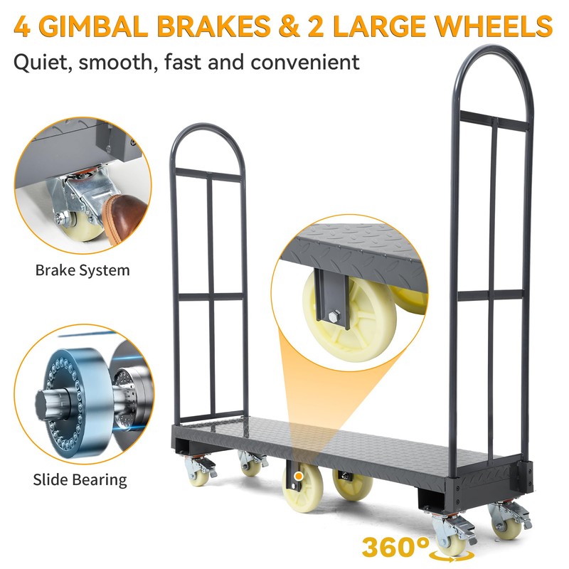 - Easy to Assemble & Move:YINTATECH u-boat platform dolly is easy to mount according to the installation instruction, which can maximum save your time and labor.The uboat dolly has 4 Swivel Wheels with Brake & 2 Solid Wheels, which greatly increase the flexibility and stability.You can easily move the utility cart without too much effort