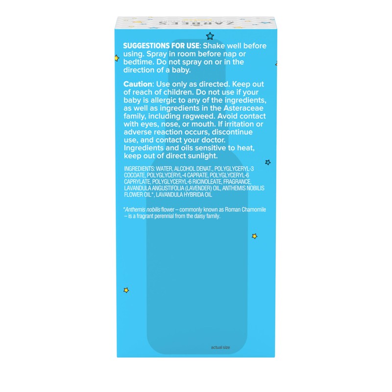 Zarbee's Baby Bedtime Spray with Lavender & Chamomile creates a soothing aroma as part of nap or bedtime. Our calming spray is safe & effective for ages 0 months+. Made with chamomile and lavender, this calming spray helps baby relax and drift off to dreamland, so the whole hive can relax too. Packaged in an easy-to-use spray bottle, this room spray features essential oils known for their comforting scents. Our Baby Calming Bedtime Spray is made from carefully selected ingredients inspired by nature—free of artificial fragrances, parabens, or petroleum. It makes a dreamy addition to your little one’s nap or bedtime routine. #1 Pediatrician Recommended Sleep Support Brand for kids. Keep your hive healthy: Check out our complete range of products that are made from carefully selected ingredients inspired by nature and backed by science. * These statements have not been evaluated by the Food and Drug Administration. This product is not intended to diagnose, treat, cure, or prevent any disease.