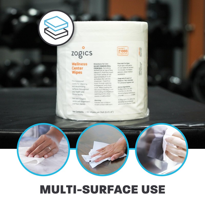 - DURABLE GYM CLEANING WIPES: Zogics gym wipes are the perfect surface cleaner wipes to help keep your wellness center clean and safe for both your staff and your members. Strong and made with durable materials, they get the job done and leave behind a crisp, fresh scent.