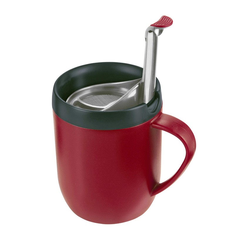- Simply put in the ground coffee, add hot water, and press the fine mesh filter to brew fresh coffee.