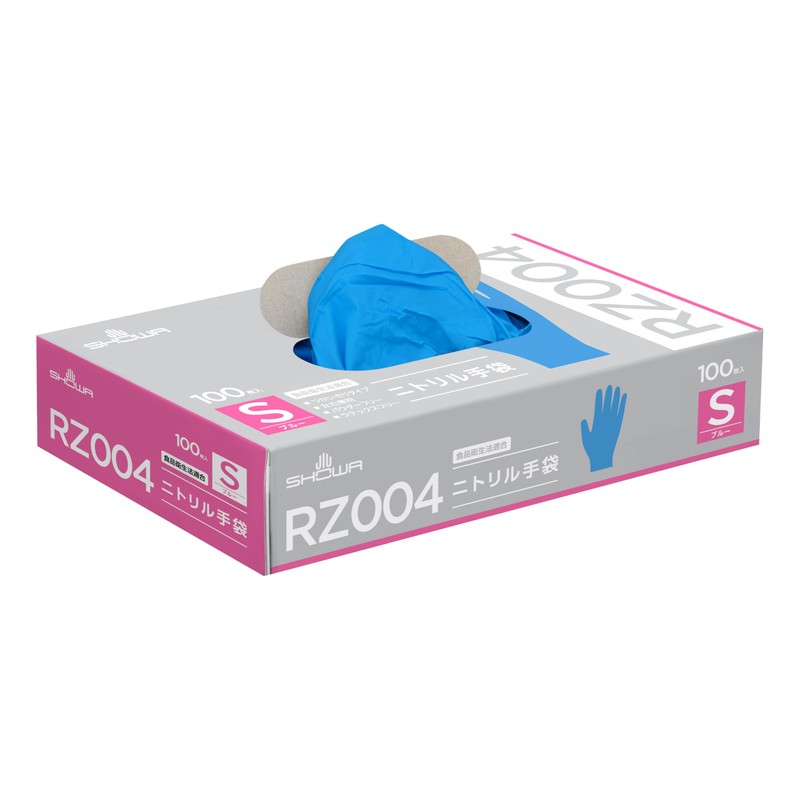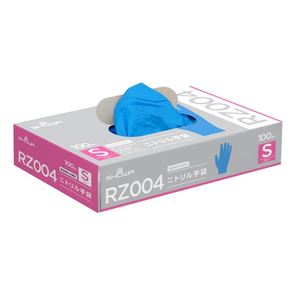 [ショーワグローブ] ニトリル手袋 0.1mm以上 薄くて強い破れにくい (パウダーフリー) ニトリルゴム製使いきり手袋 Sサイズ ブルー 100枚入 RZ004 調理 自転車整備 バイク整備 洗車 DIY 清掃 介護