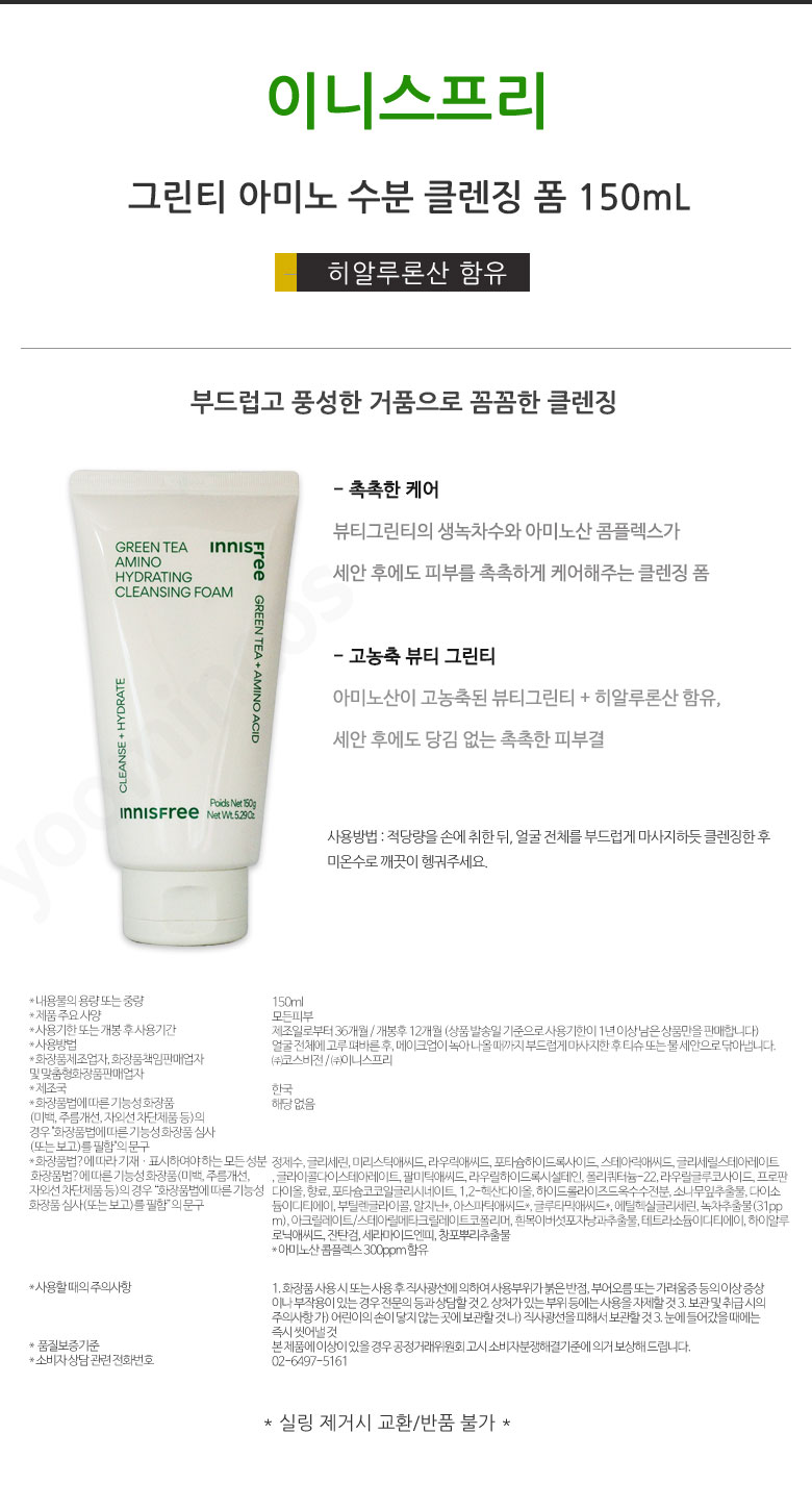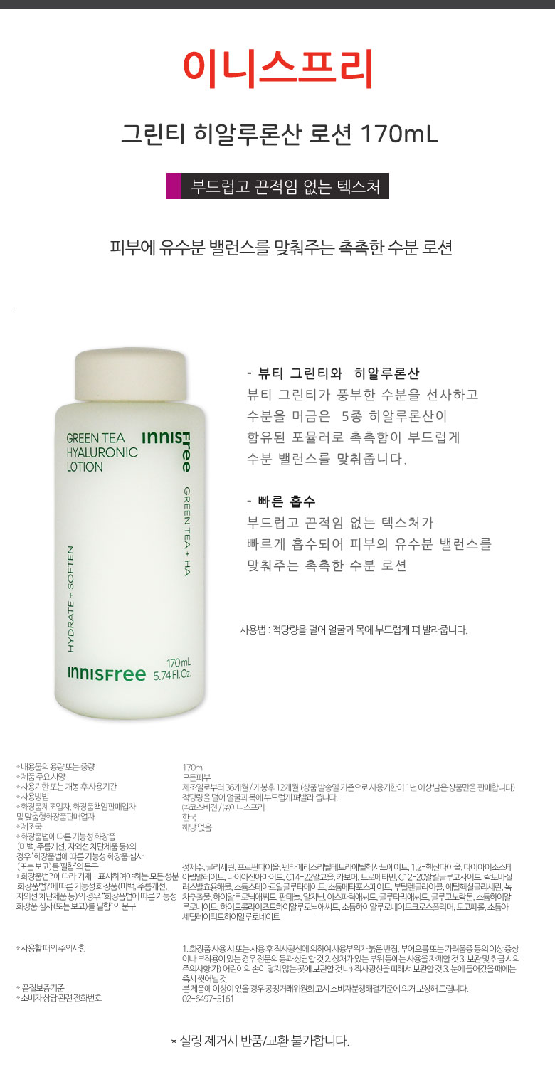 1+1/Innisfree Green Tea Hyaluronic Acid/Skin/Lotion/Cream/Cleansing Foam / 1+1이니스프리 그린티 히알루론산 스킨로션크림클렌징 폼