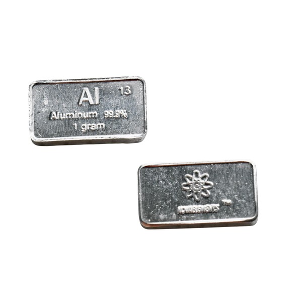 Sample made of pure 99.9% aluminium in bars weighing 1 gram. Pure aluminium bar for collection of elements and investments. 1 bar per quantity