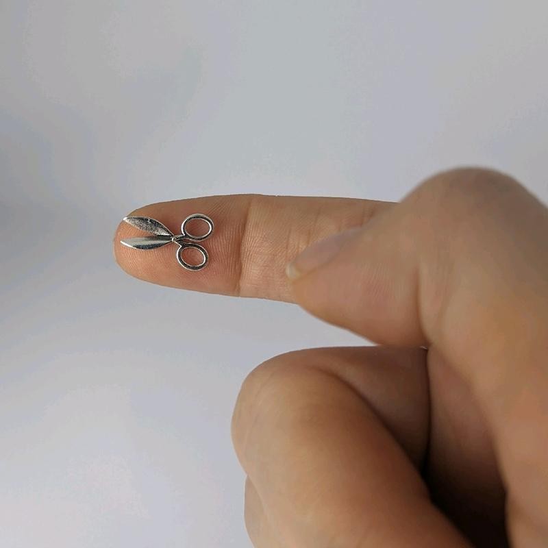 These Miniature Scissors are a must-have for any doll or dollhouse enthusiast. Available in four different colors, these non-functional scissors are perfect for adding a touch of realism to your miniature world. You could even make scissor earrings by using them as charms! Crafted with precision, these metal scissors are scaled down to perfectly fit into the tiny hands of your dolls and figurines. Use them to complete sewing and crafting scenes or simply as an adorable decorative accessory. Get ready to take your miniature collection to the next level with these charming miniature scissors! Material: Alloy Measures 0.625 inches long x 0.375 inches wide x 0.094 inches thick (at thickest point)