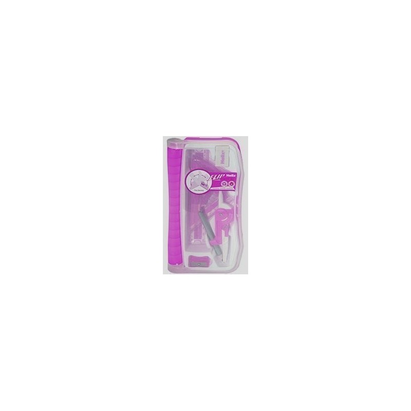 1 x Pink Helix Flip Maths Geometry Set & Case, Ruler, Protractor, Compass