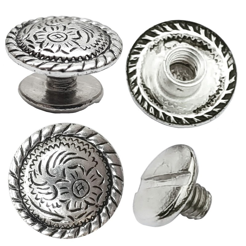 10 Pack 1/2" Antiqued Silver Engraved Concho 1/4" Chicago Screws Nickel