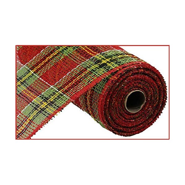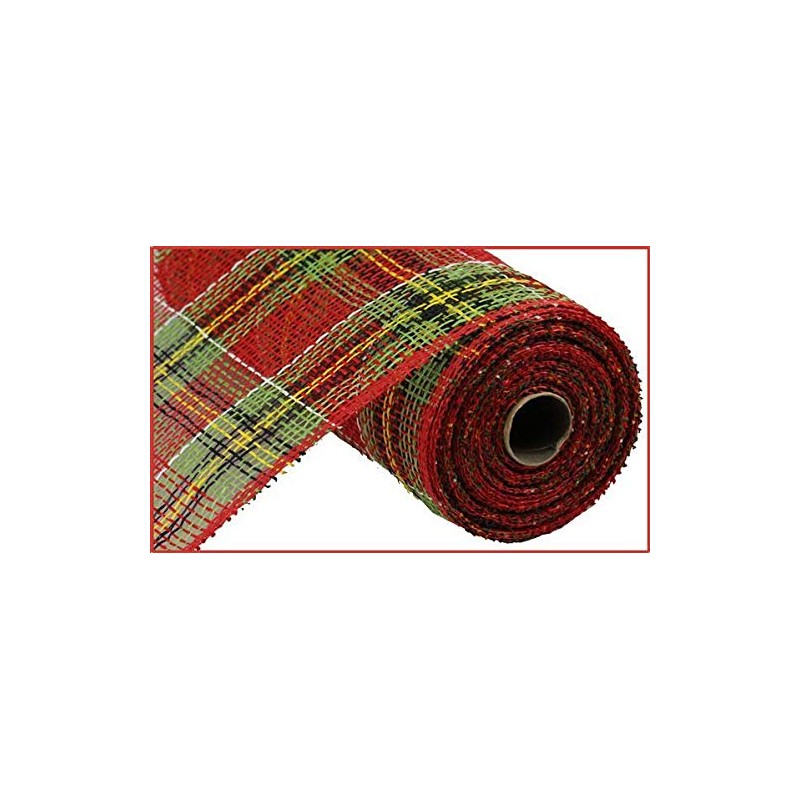 - Red, Lime, Black, Yellow, and White Poly Burlap Plaid Deco Mesh
