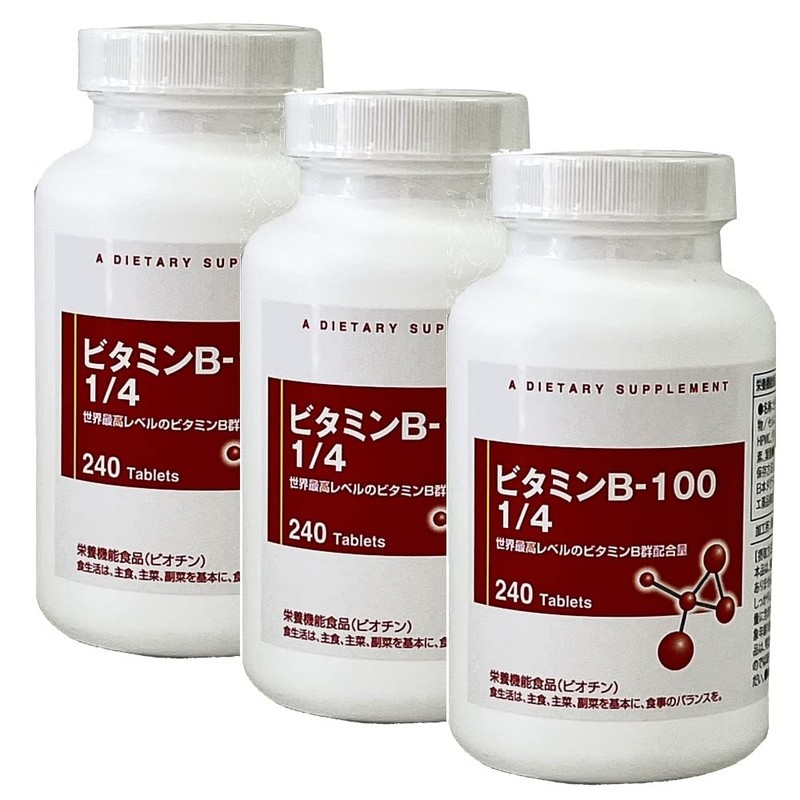 トリ‐B‐100 1/4は、ビタミンB群をまんべんなくカバーし、通常市販されているBコンプレックスの20倍以上の含有量を誇ります。