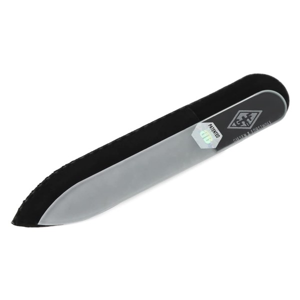 【ドイツ ゾーリンゲン 創業100年 GIESEN&FORSTHOFF別注 チェコ・ブラジェク 製造 ガラス爪やすり 両面 特注ベルベットケース付属】【男性も使いやすい:ツルツルに削れて清潔感あふれる爪に】強化ガラス製プレミアム爪やすり 服に引っかかるバリも防止 両面利用可 正規代理店品 (Sサイズ9cm)