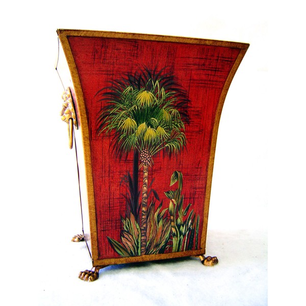 - This is an amazing art work of 11.5"H hand painted palm tree tole wastebasket.