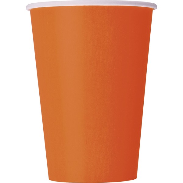 Package of 10 Orange Paper Cups;Orange Party Cups hold 12oz of your favorite cold beverages;Ideal for a birthday party, Halloween party, Thanksgiving dinner, or other special occasion;Disposable cups make after-party cleanup quick and easy;Coordinate with other orange party supplies and party tableware