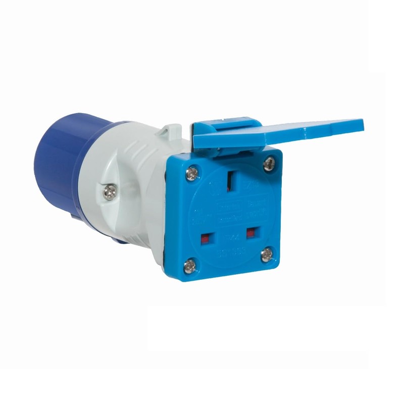 - Plugs into 16 amp coupler socket to convert it to a 13 amp standard UK socket