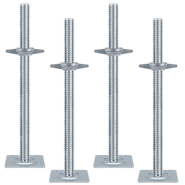 18" Scaffold Adjustable Leveling-Jack Parts - Yzzwer Galvanized Solid Threaded Rod Scaffolding Feet for Baker Style Scaffolding 4 Pack