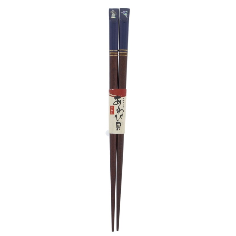 箸 貝細工 アワビ 彩 うさぎ 木製 (天然木) 漆 塗装 青 18cm