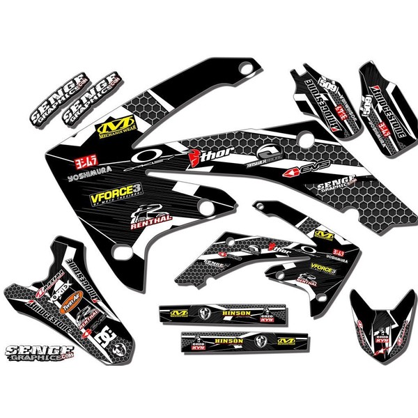 - 1993-1994 CR 250 R PODIUM Black Senge Graphics Kit Compatible with Honda. The photo shown shows the exact decals you will receive. Please refer to the photo to make sure you are getting the exact amount of coverage you want. You can toggle between base, complete, and rider I.D. to see all of the differences.