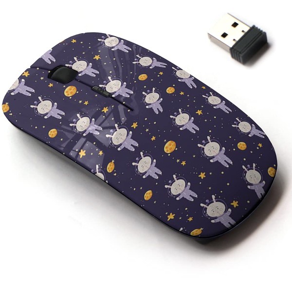 2.4G Wireless Mouse with Cute Pattern Design for All Laptops and Desktops with Nano Receiver - Astronaut Bunnies