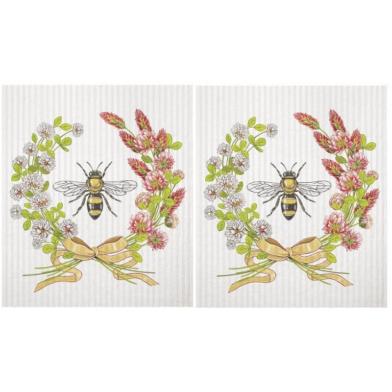 2 Mary Lake Thompson SC783 Reusable Kitchen Sponge Cloths, Bee Clover Wreath