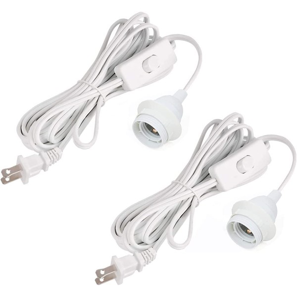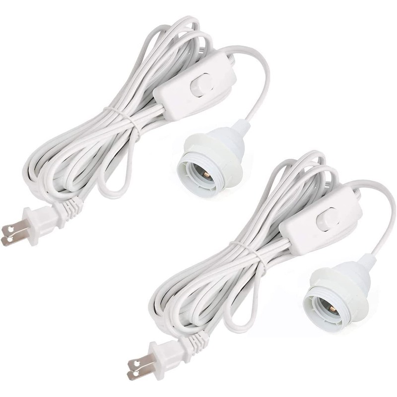 2 Pack Plug in Pendant Light Cord Kit, DIY Extension Hanging Lighting with E26 Socket & Switch - 15 FT