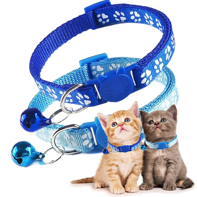 2-Pack Small Cat Collar with Bell Pretty Kitten Collar Buckle Adjustable Poly...