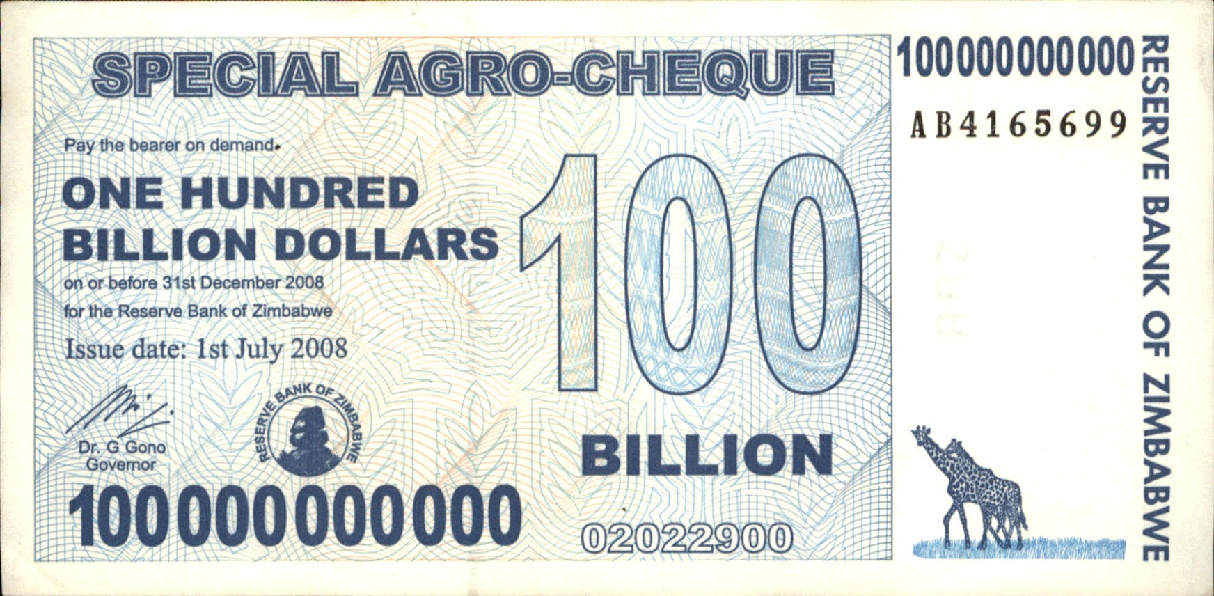 - Item Title -2 x 100 Billion Zimbabwe Dollars Agro-Cheque Circulated 2008 Money Banknote