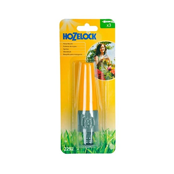 - This Hozelock hose nozzle is adjustable and and able to produce a variety of sprays from a jet spray
