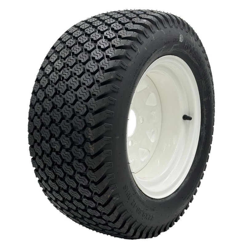 • 22X8.50-12 Super Turf Tire & White Wheel Assembly. 4 on 4 bolt pattern, 2.82 pilot hole, -0.25 offset