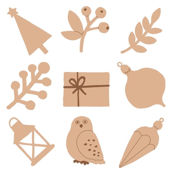 - Mini Christmas themed wooden silhouettes to decorate and stick on your scrapbooking creations or decorative objects.