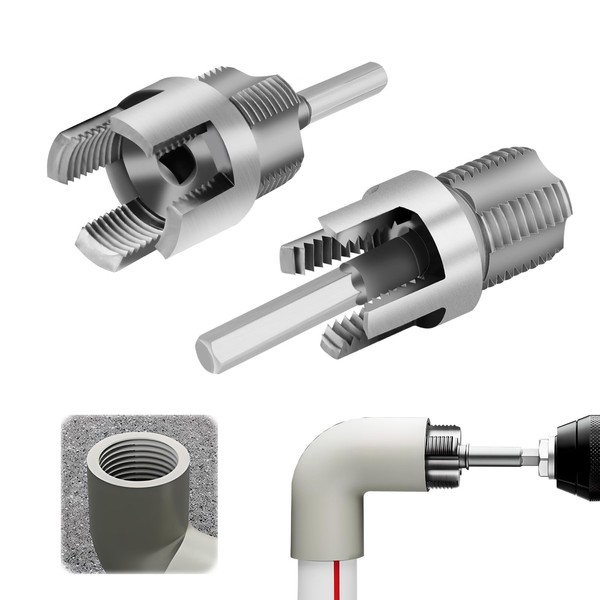 2Pcs Integrated Internal & External Pipe Threading Tool, 1/2'' and 3/4'' PVC Pipe Threader, Electric Drill Compatible PVC Pipes Threader Kit
