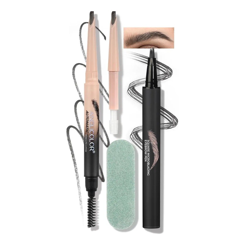 Crea cejas duraderas y de aspecto natural con este set profesional. El lápiz líquido proporciona un efecto grueso y realista, mientras que el lápiz plano permite delinear y rellenar con precisión.