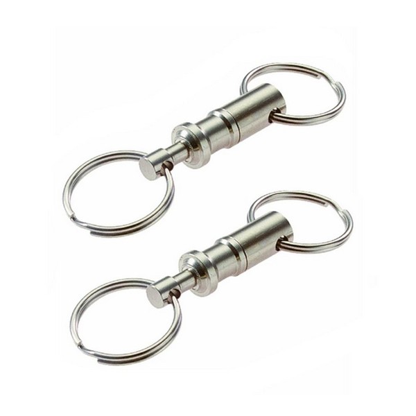 2PCS Pull-Apart Key Rings Keychains-Heavy Duty Dual Key Ring Pull Apart Snap Lock Holder Detachable Pull (Silver)