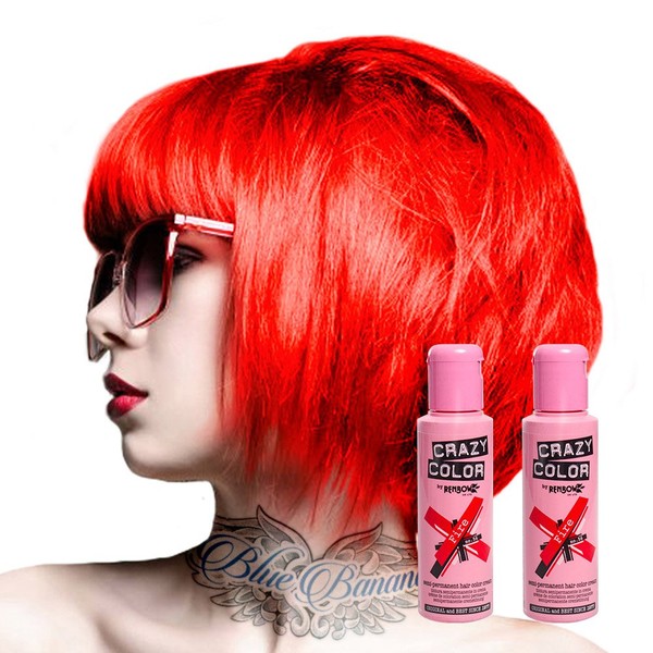 2x Crazy Color Semi-Permanent Hair Dye 2x 100ml (Fire Red)