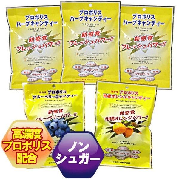 高濃度プロポリス配合 プロポリスキャンディー のど飴 ノンシュガー 個包装 (ハーブ3袋・オレンジ1袋・ブルーベリー1袋)