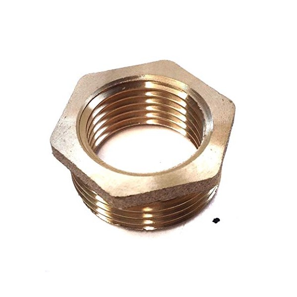 3/4 Inch BSP x 1/2 inch BSP brass hexagon reducing bush for reducing the thread diameter in a plumbing fitting