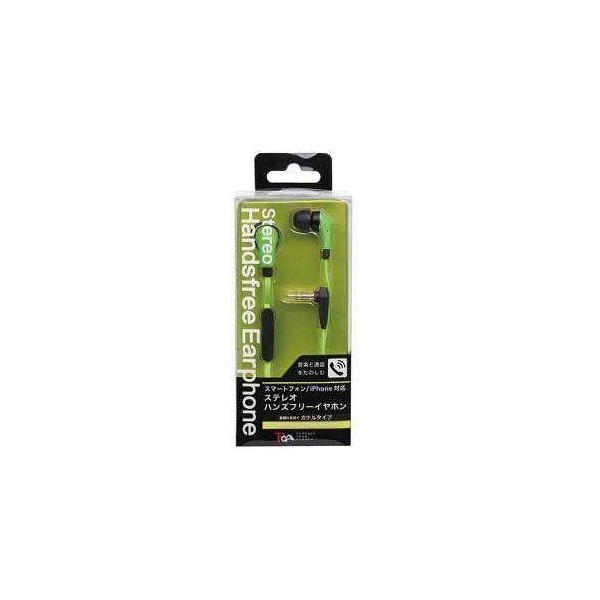 3.5φステレオハンズフリーイヤホン フラットケーブル グリーン PG-SHE05GR