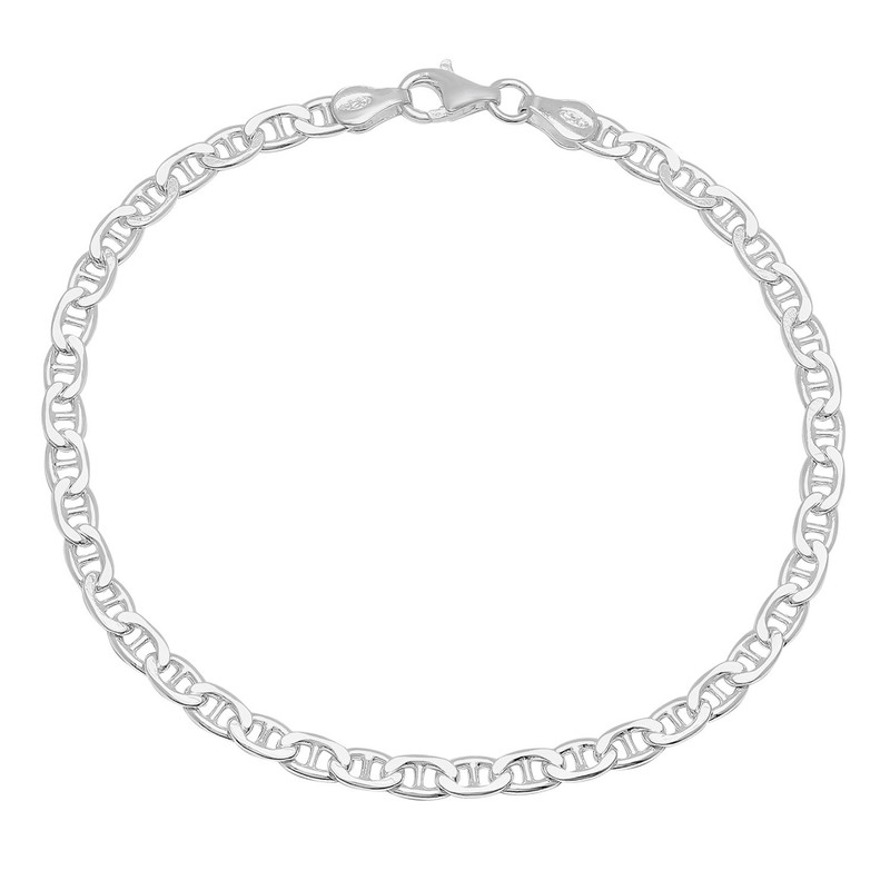 3.5mm Solid .925 Sterling Silver Flat Mariner Chain Bracelet, 9 inches
